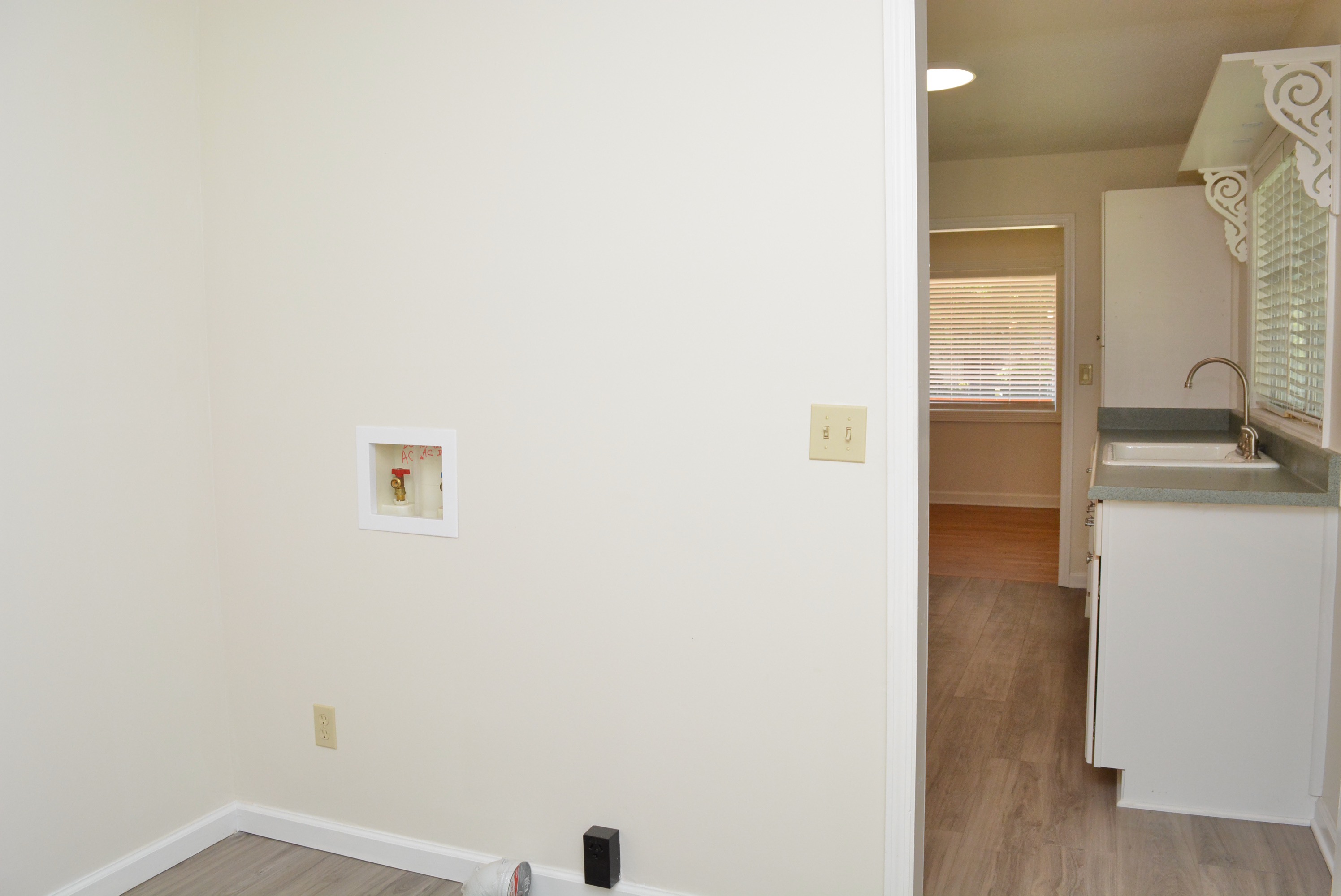 A laundry sink and built-in cabinetry add functionality to the large laundry room.