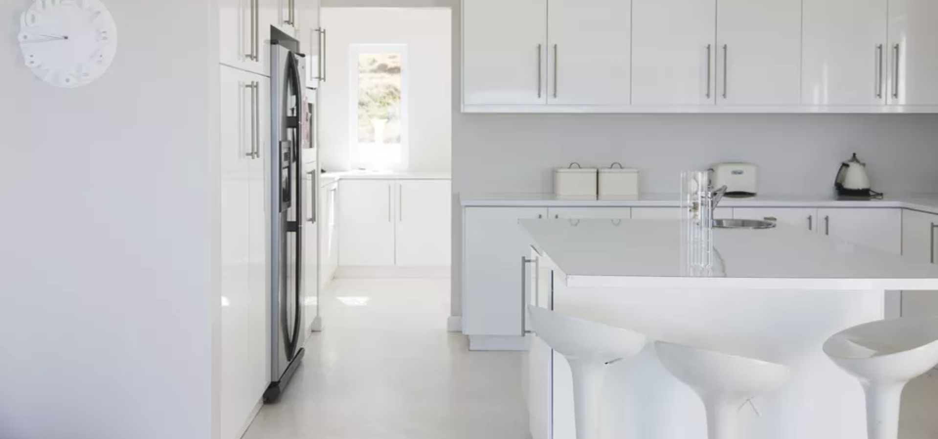 Brazilian cherry flooring, deep baseboards, high ceilings, recessed lighting, and custom trim work create an elegant backdrop.